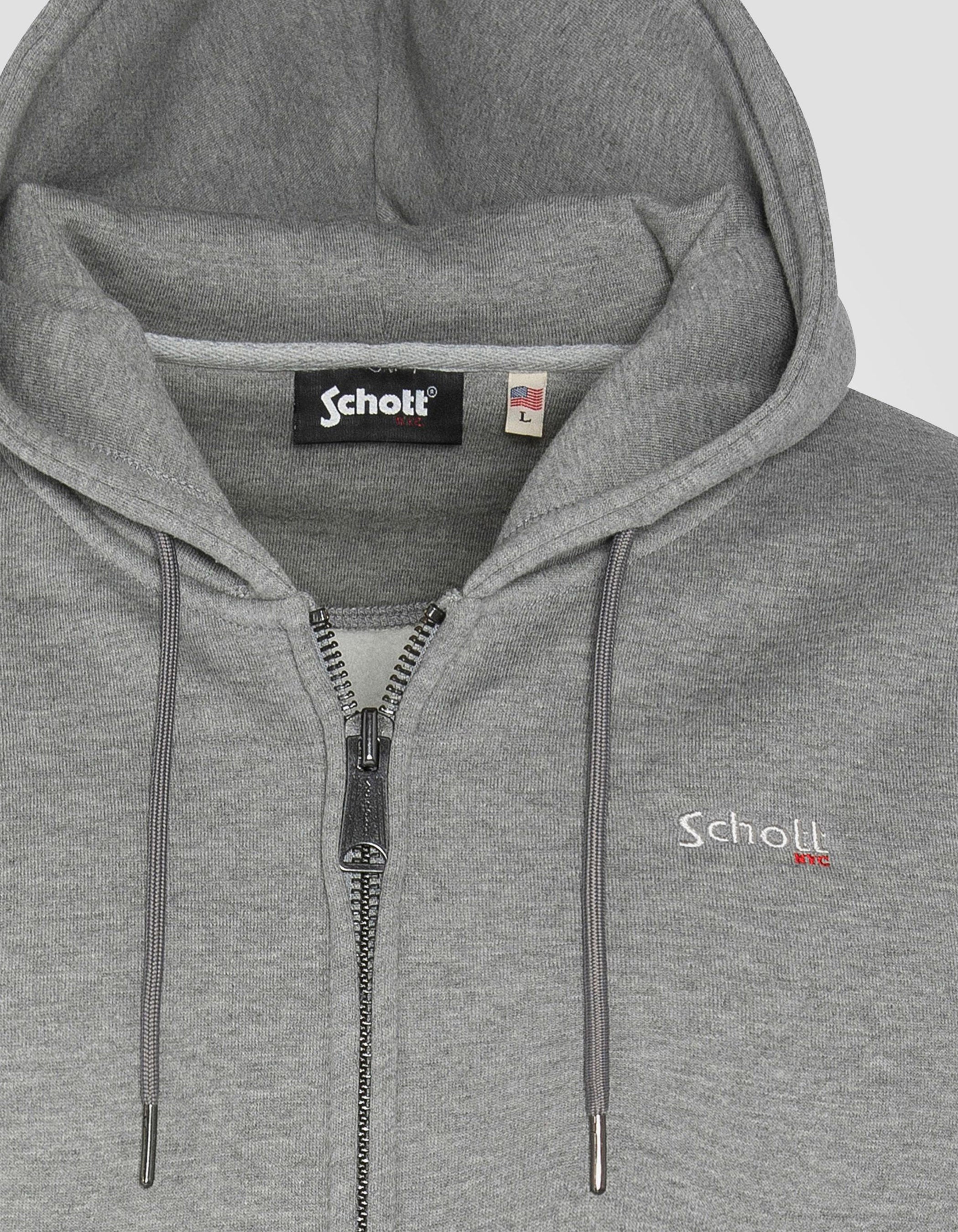 Sweatshirt zippé gris chiné à capuche en molleton épais - GRIS CHINÉ
